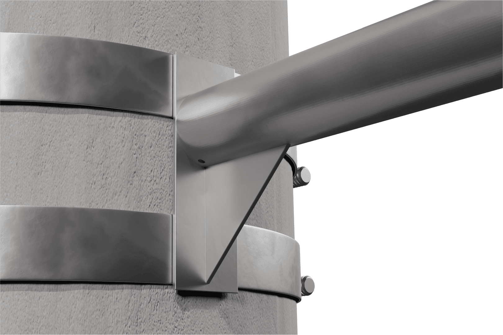 Soldadura: Cordones continuos, con proceso de soldadura MIG con limpieza previa para asegurar la calidad del recubrimiento. Tubo de Ø 2½” (≈ 63,5 mm) ofrece buena sección para soporte de luminaria, brindar estabilidad y rigidez estructural. Abrazaderas de sujeción al poste deben permitir fijación firme, con pernos rosca corrida de 5/8 y platina de unión soldada, según norma de diseño. Posibilidad de paso interno de cableado eléctrico, cuando se requiere, con perforación adecuada en el tubo para entrada de acometida. Recubrimiento protector que garantiza resistencia a corrosión en ambientes exteriores.